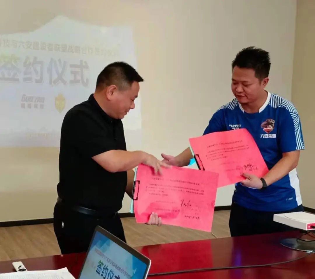 2021年8月21日下午,在六安市體育中心會議室,安徽國耀通信科技有限公司與六安建設者足球聯(lián)盟簽訂戰(zhàn)略合作協(xié)議,這標志著雙方在長期友好合作的基礎上,結(jié)成了優(yōu)勢互補、強強聯(lián)合的戰(zhàn)略合作伙伴。安徽國耀通信科技有限公司總經(jīng)理陳浩、六安建設者聯(lián)盟代表、隊長陳科新等出席簽約儀式。