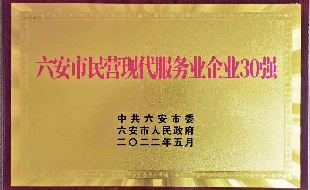 “六安市民營(yíng)現(xiàn)代服務(wù)業(yè)企業(yè)30強(qiáng)”